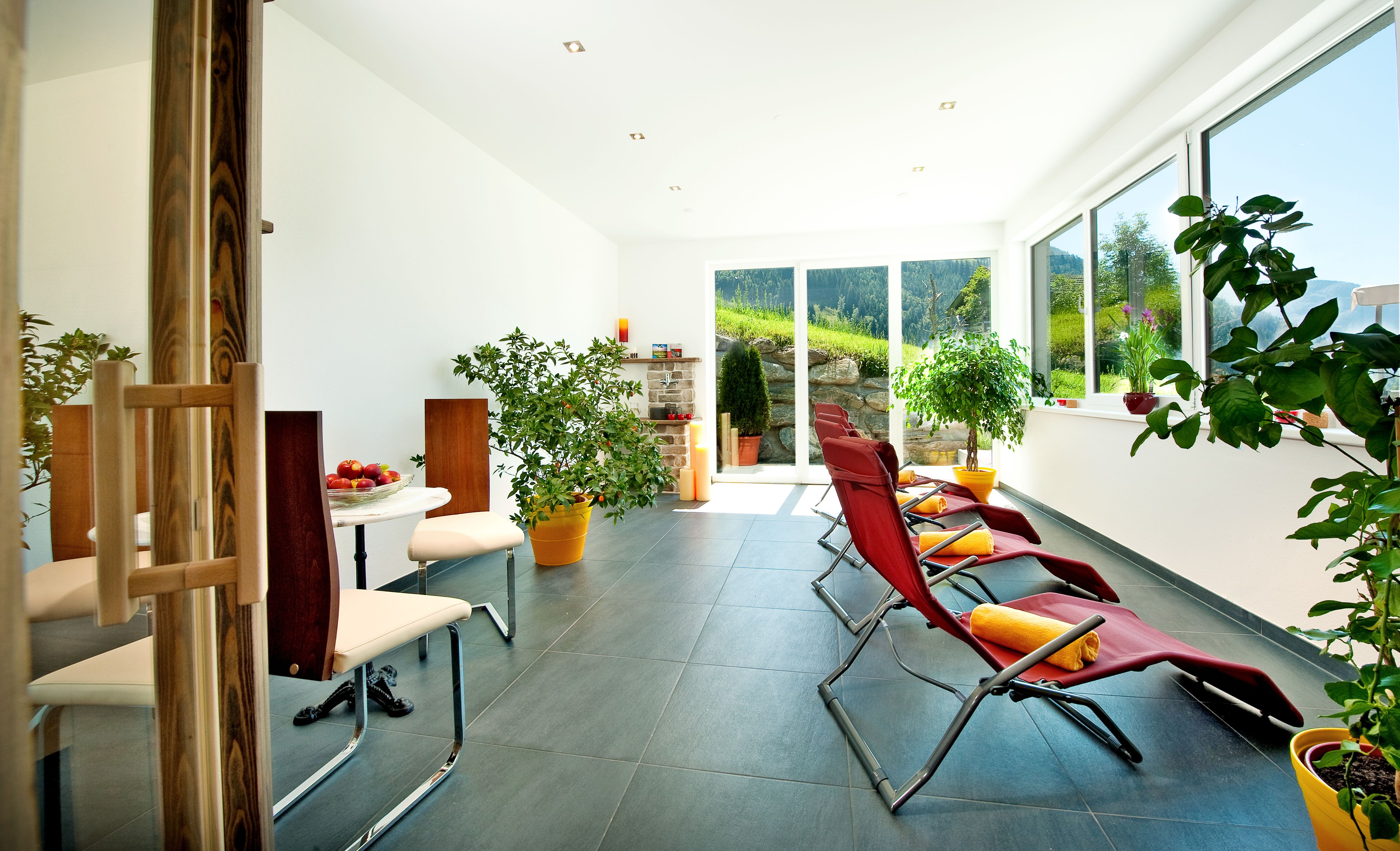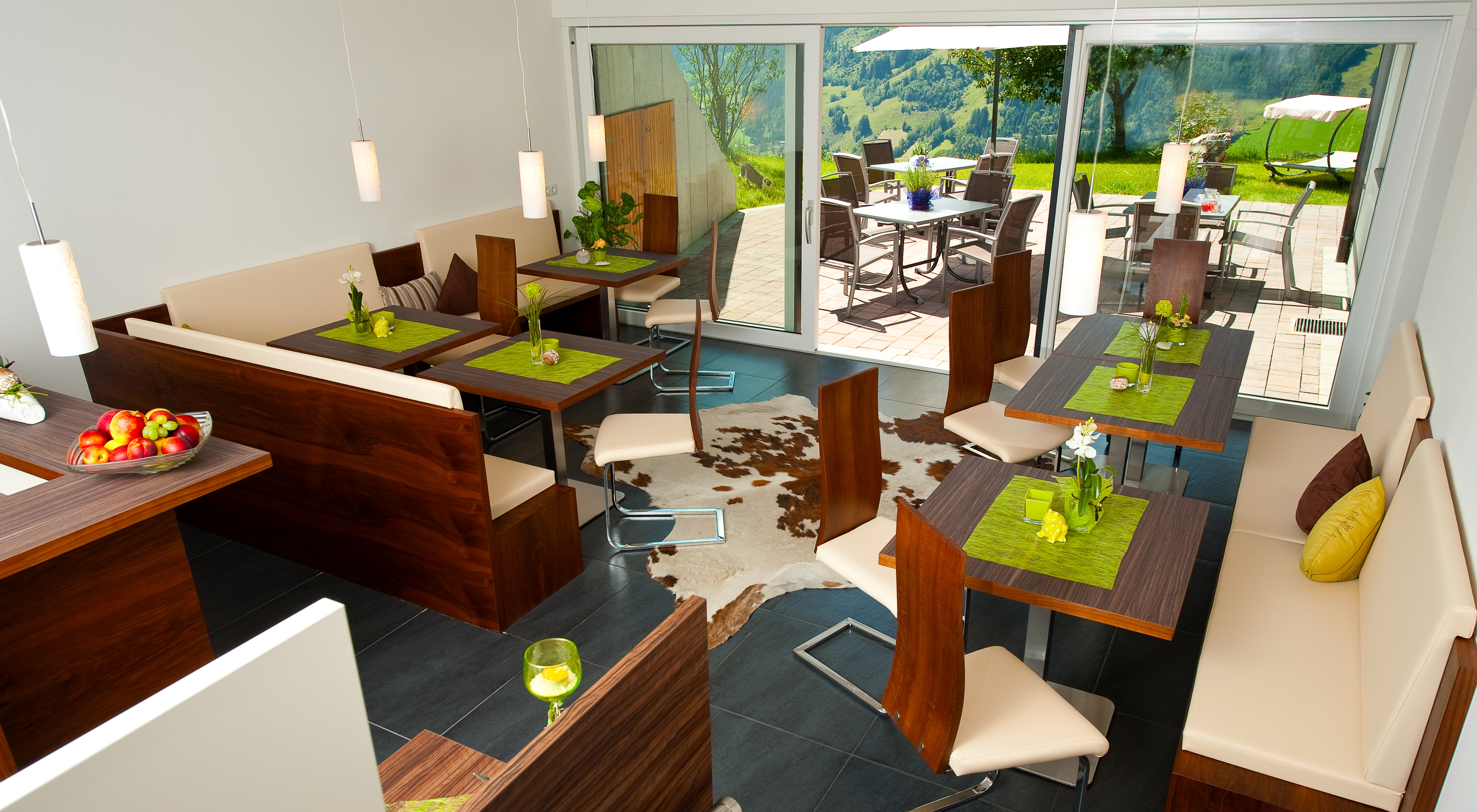 Das gemütliche Stüberl mit Sonnenterrasse, bietet sich während des Tages und auch an den Abenden zum gemeinsamen Verweilen an.